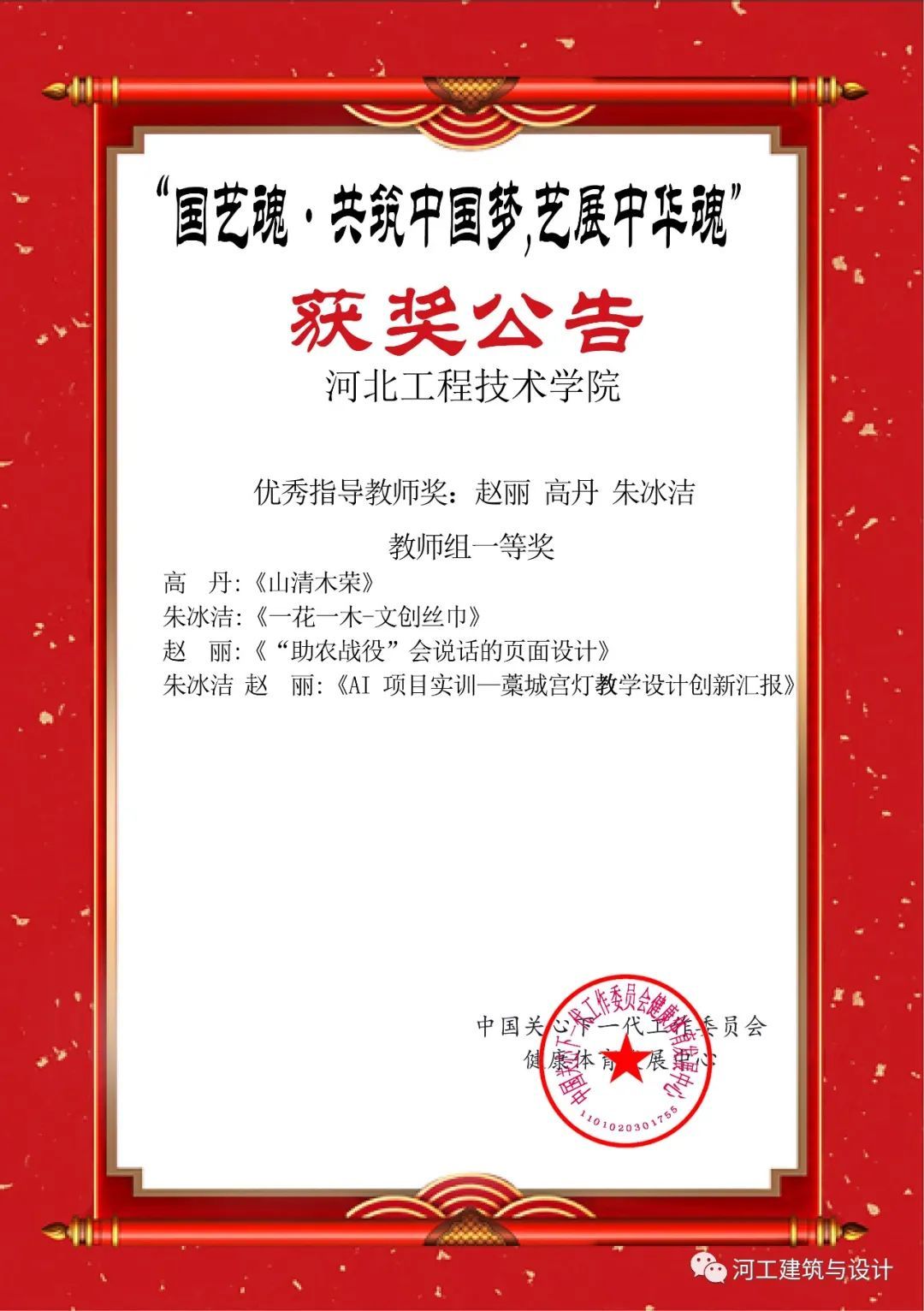 学院拥有省级教学成果奖2项,省级一流课程3门,近三年教师科研论文奖项160项,学生获市级以上奖项150项。《住宅建筑设计》荣获省级精品在线开放课程;《住宅建筑设计原理》线上线下混合式课程荣获省级一流本科立项建设课程;《建筑材料》荣获省级社会实践一流本科课程;《面向区域的建筑学专业创新性应用型人才培养模式研究与实践》荣获河北省高等教育教学成果三等奖。