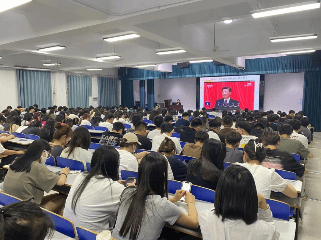 张教授带领大家重温中国共产党的赶考之路,梳理了党的百年赶考历程,深刻体会赶考的内涵;接着从考信念,考立场,考规矩,考作风,考能力这五方面阐述了赶考考什么,并分享了对赶考精神的解读;最后分析了新时代赶考的危险和考验,激励同学们不忘初心,牢记使命,不辜负这个最美好的时代,做有志气有骨气有底气的时代青年。