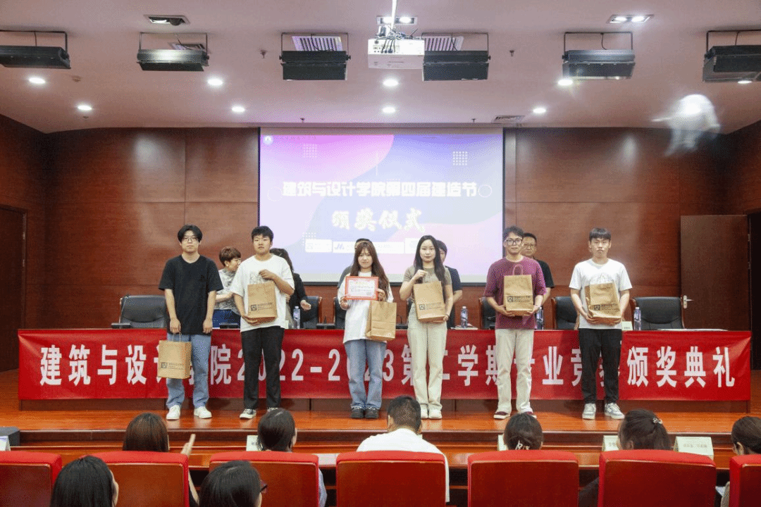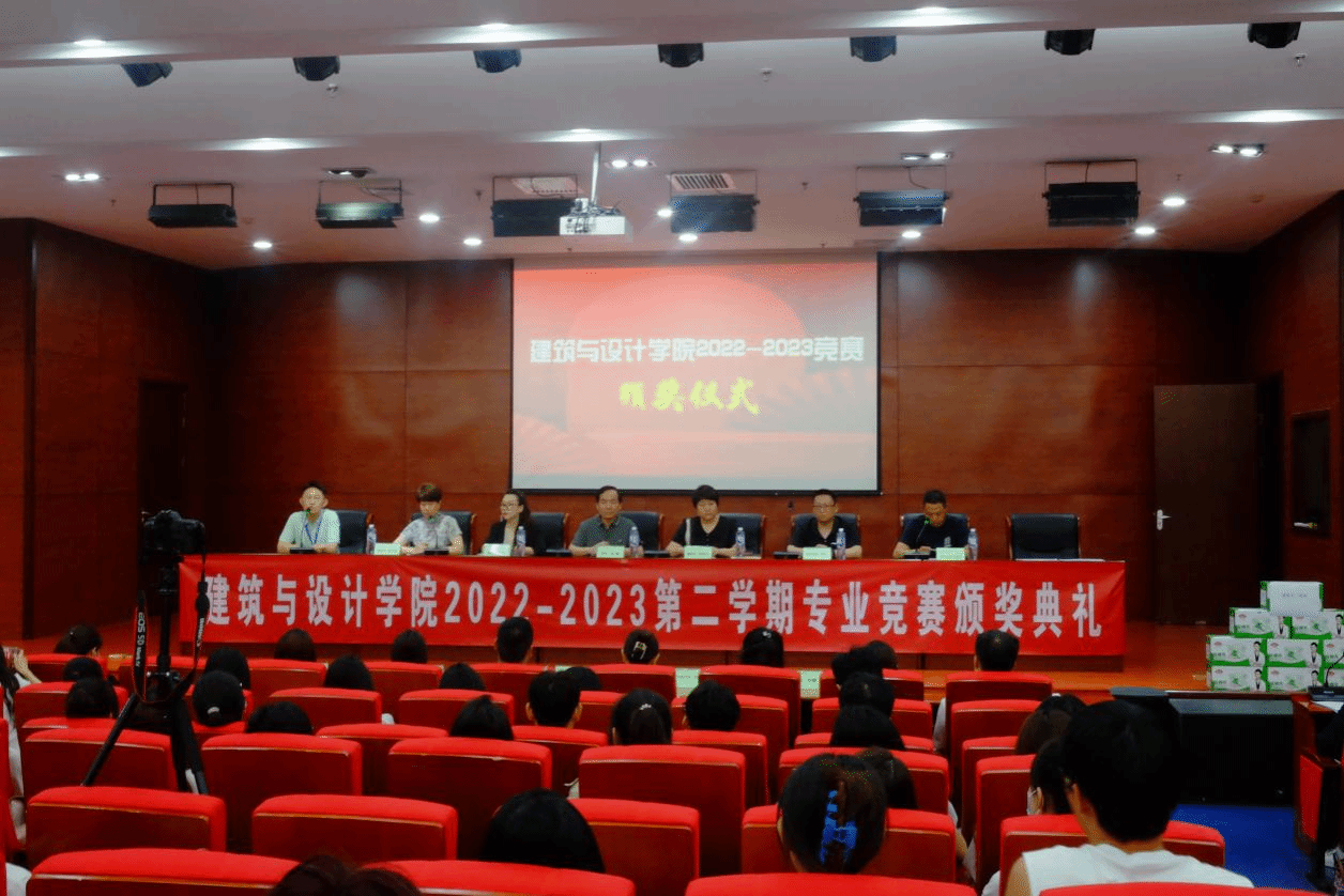 建筑与设计学院于2023年6月7日在图书馆报告厅隆重地举行2022-2023第二学期专业类竞赛的颁奖仪式。出席颁奖仪式的有建筑与设计学院院长武勇、副院长张玲玲、谷雨、李江涛、尚色艺创品牌设计(河北)副总经理郭康、河北冀淼市政工程有限公司袁晨君以及各系主任、教研办主任、学管办主任、团总支书记、各竞赛辅导教师,本次仪式由建筑与设计学院副院长李江涛主持。
