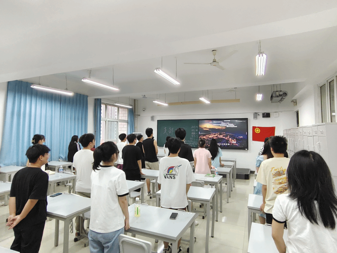 接着,支部大会第二项,带领全班同学一起唱团歌《光荣啊,中国共青团》。
