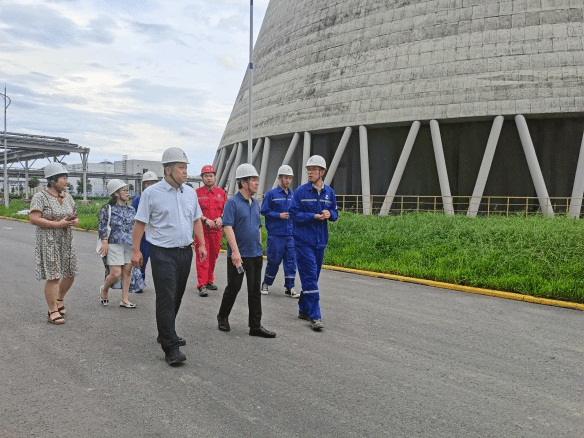 中国电建集团河北工程有限公司南方公司总经理杜磊、项管部副主任兼元豪 EPC 工质部部长郭芳沛、项管部副主任兼运维项目部生技部主任马腾超、党政办副主任兼元豪铝业办公室主任张朋辉、2023年新入职学生吕庆斌,一起参与考察和研讨,双方针对行业现状发展现状、学生专业发展进行了探讨。