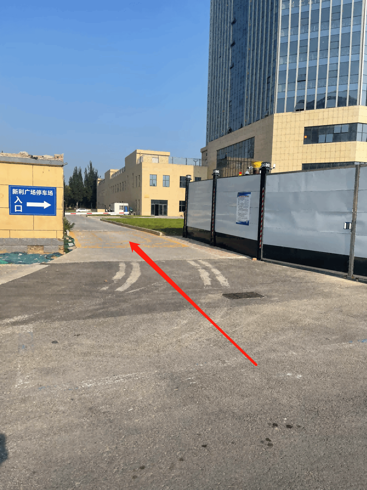从滨河街驶入宫北路,按照箭头指示方向进入新利广场地下停车场入口。