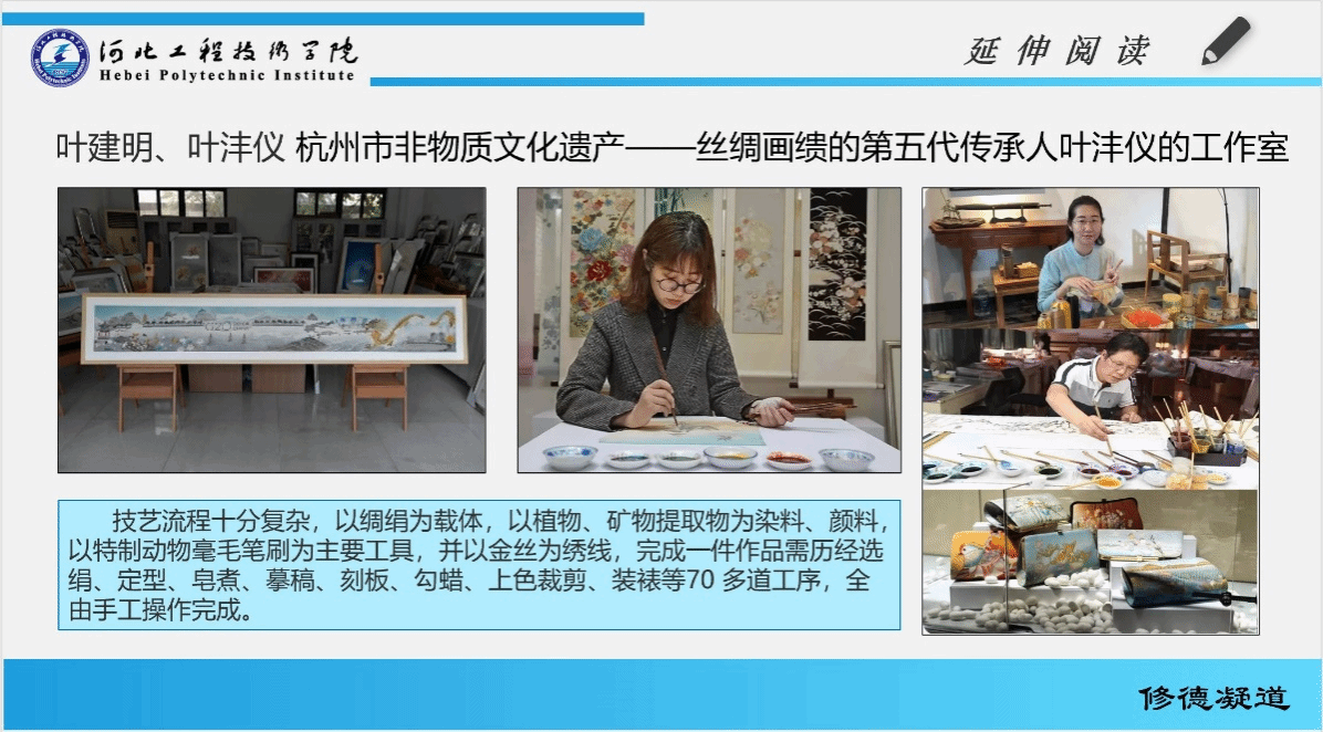 《中国古代设计文献选讲》微课用信息化手段将讲课内容进行了处理,设置了原典节选、专题释义、延伸阅读以及多媒体学习资源,共三个教学板块,教学内容丰富,理论知识联系实际操作工艺,培养了学生的专业素质,提升了艺术设计理论的水平,特别是培养了学生的思考分析能力,使学生能将所学知识和工艺方法运用在自己的设计作品上以提升创造水平,为今后从事艺术类、设计类的工作与研究打下良好的基础。在当今设计教育蓬勃发展之际,我国博大精深、富于艺术与技术启发性的古代设计思想,有待于我们的“回头看”,有待于我们的共同关注,有待于我们的一同挖掘和弘扬!