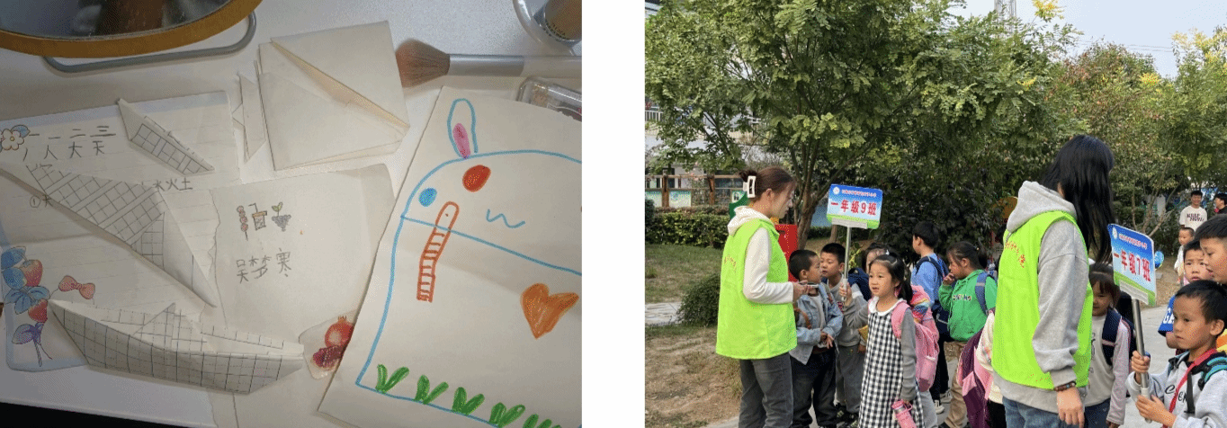 课堂结束后,志愿者老师组织同学们认真排队,等待家长接。在等待过程中学生们与志愿者老师分享校园趣事,课堂感受,谈论课堂收获,谈及梦想,滔滔不绝的话语,天马行空的想象尽在其中。待家长到达后与志愿者老师一一挥手道别。