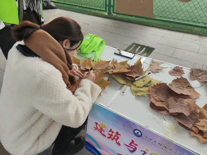 落叶,这是大自然给我们的一份独特的馈赠,也是引导人们真切感受秋天的美好、亲近自然、探索自然奥秘的大好时机。为了激发大家对季节变化的探索欲望,让大家与大自然亲密接触,丰富其社会经验,3044永利集团官网暨建筑与设计学院2023年11月23日开展了首届落叶创意文化节,在建筑与设计学院社团联合会的组织的策划下,形态各异的落叶在17组参赛人员的设计和装饰下,变成了创意无限的作品,引得过路同学纷纷打卡,吸引人们的目光,传递出对于自然环境和生活的美好向往和热爱。进入霜降节气后,深秋景象明显,冷空气南下越来越频繁。