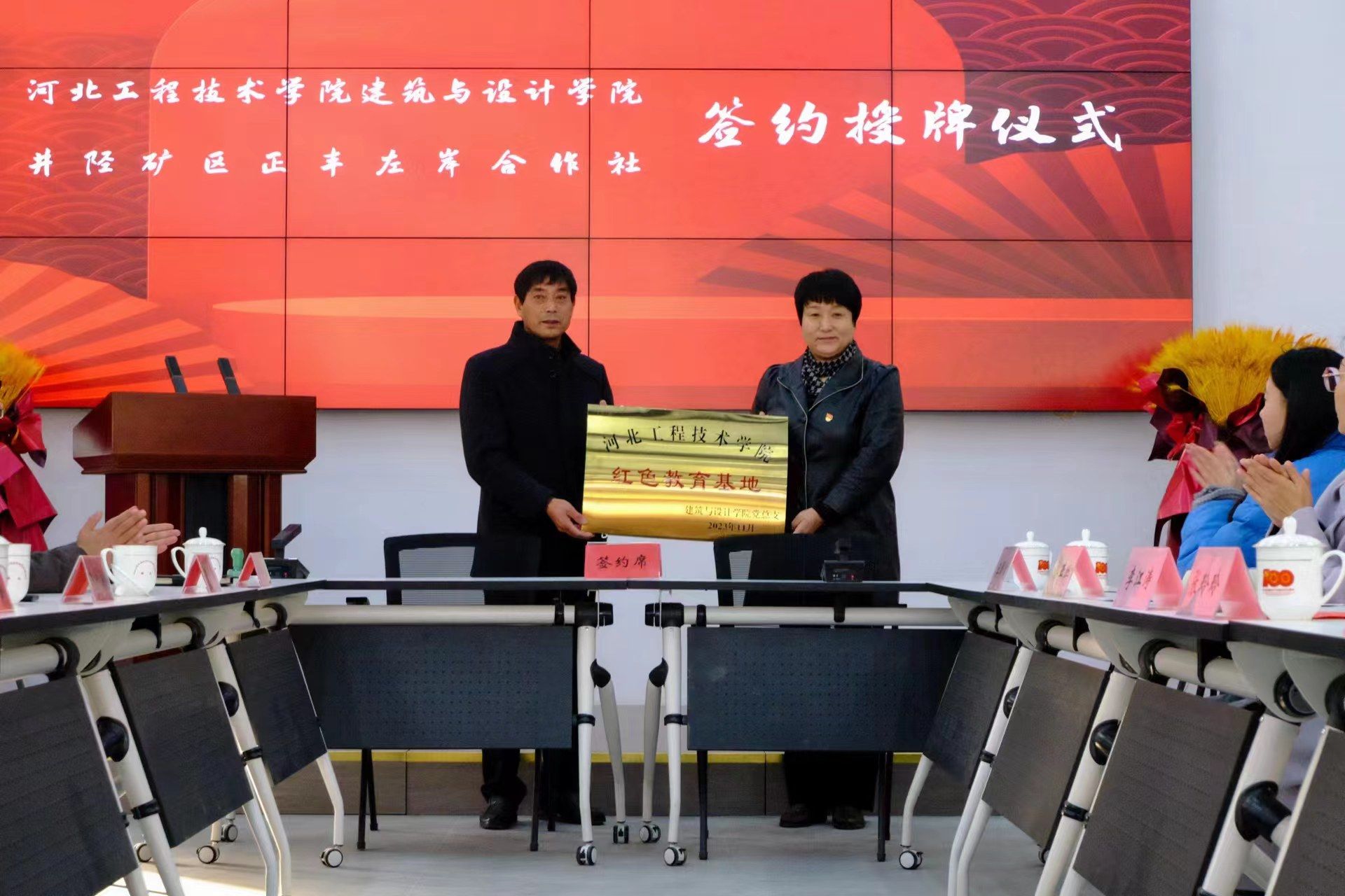 为进一步提升我院各专业学生实践能力,传承和弘扬本地优秀红色文化与乡土文化,充分利用好当地资源优势,不断深化实践基地的特色育人理念,展现红色历史,传承红色基因,增强民族自豪感。12月5日,建筑与设计学院院长武勇、党总支书记副院长张玲玲、副院长李江涛携环境设计系系主任及骨干教师与井陉矿区正丰左岸合作社进行实践基地、红色教育基地签约仪式。