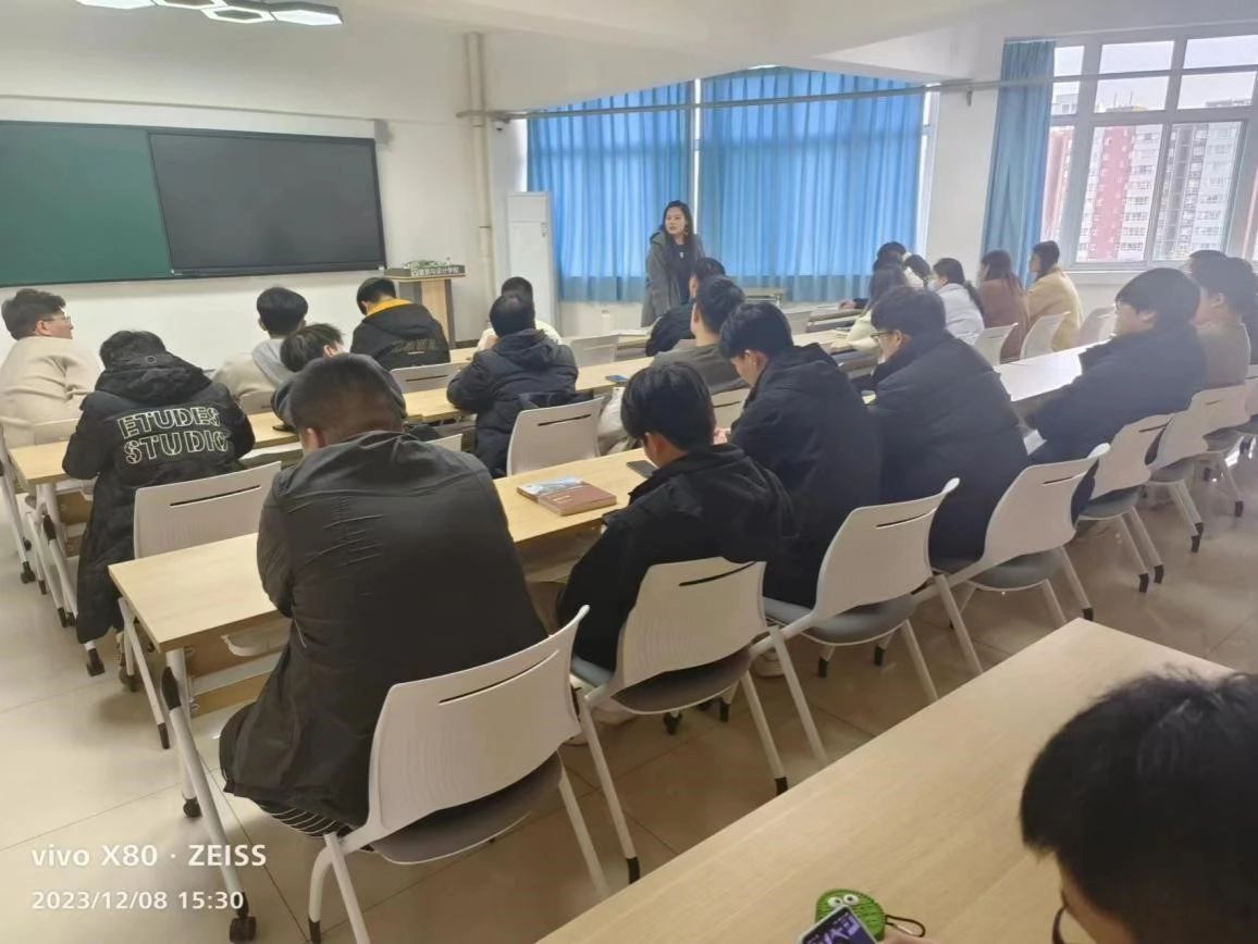 在备战公务员考试相关政策讲解中,学院从考试背景、报考条件、考试时间进行分析,从复习技巧,科目介绍以及题型展示进行了讲解,将讲备考方法和常见问题罗列了出来,思路清晰,内容条理,辅导员用生动诙谐的语言将考公的艰难过程讲解地有趣,打消了同学们对考公的抵触心理。