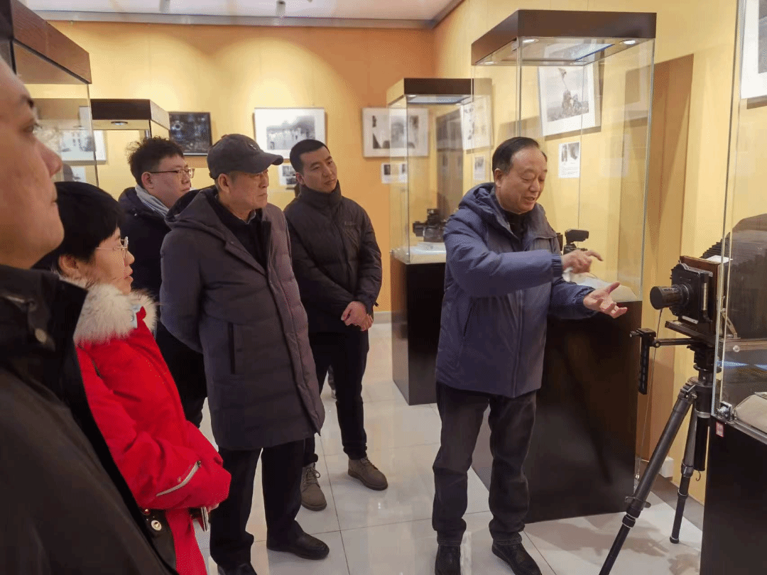 河北传媒学院副校长王彰平,在传统相机博物馆为来宾讲解不同历史时期传统相机制作工艺,以及拍摄特点。