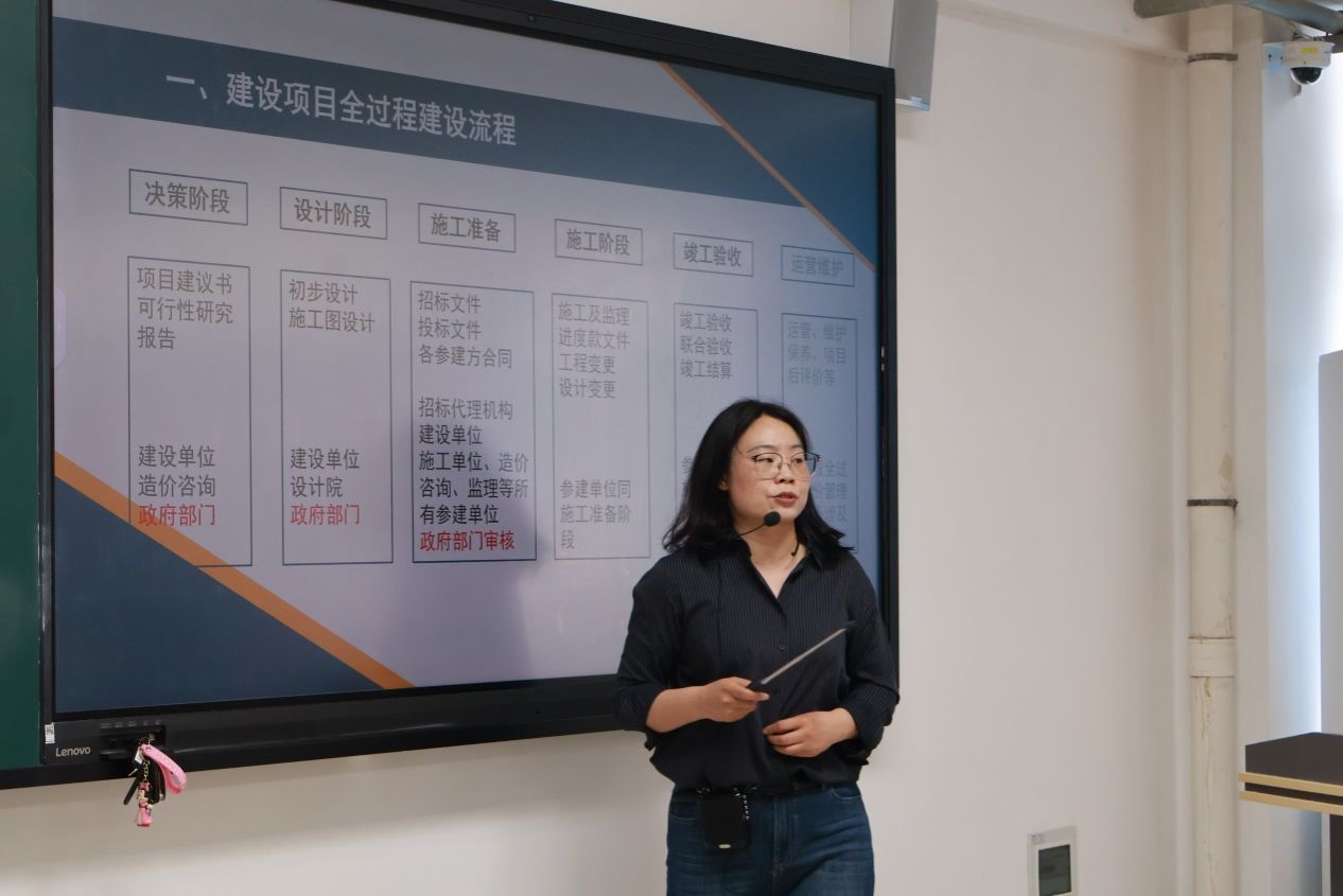 张娜老师在讲座中结合实际案例详细解读了专业的全过程建设流程、就业分析、业务场景、主干课程和业务分析、发展趋势和人才需求等,让学生对所学专业有了全面的了解,并通过具体案例为学生进行就业形式的分析,将人才培养与企业用人需求相结合,全方位、多角度地进行阐释,切实分析了学生的就业方向,并对学生接下来的学习规划和职业规划提出了指导性的意见,让师生对工程造价的发展前景、企业用人需求、就业方向有了更深入的理解。