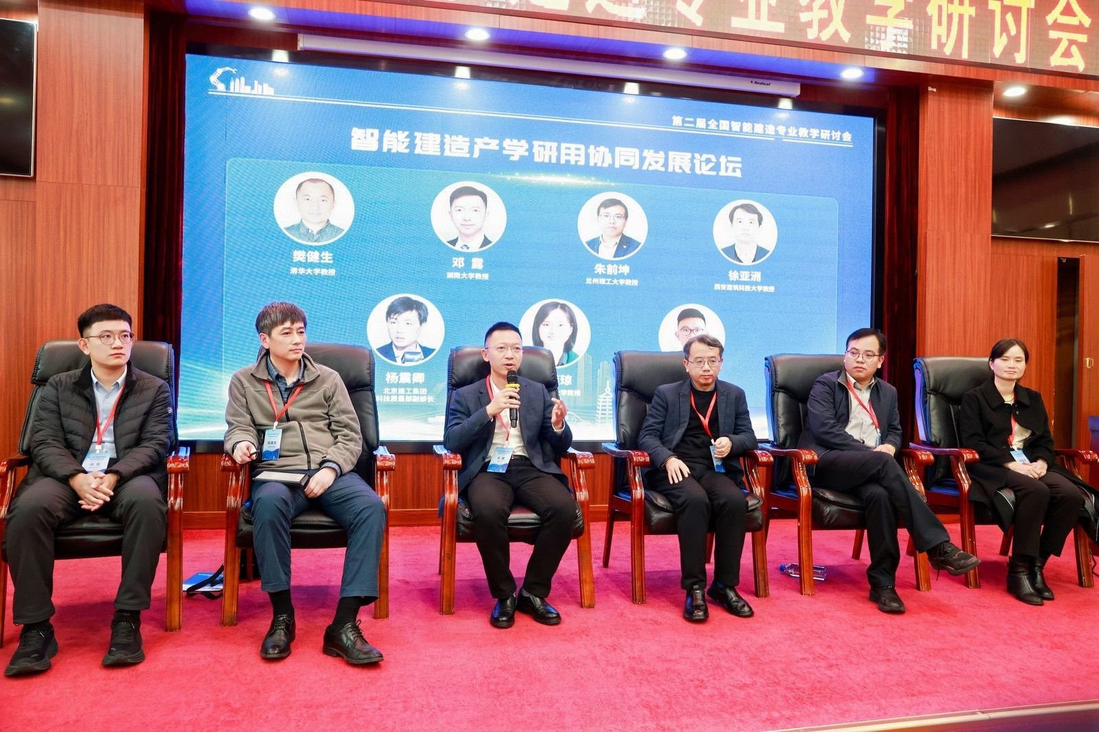 本次会议围绕我国高等院校智能建造专业的“人才培养、课程教学改革与建设、课程创新和实践及产教融合”等议题展开深入探讨和经验交流。大会中,河北省住房和城乡建设厅原二级巡视员郁达飞,清华大学教授冯鹏教授、樊健生教授,合肥工业大学教授王静峰教授,北京建工集团科技质量部杨震卿部长等16位专家分别围绕会议主题做了报告,并就开展产学研用专家论坛进行互动交流。