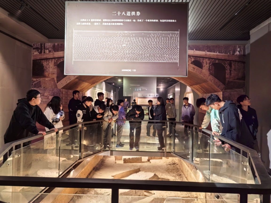 参观赵州桥:11月10日,学生们抵达赵州桥,这座古老而宏伟的石拱桥不仅是我国古代土木工程的杰出代表,更是对现代建筑技术的重要启示。在赵州桥科技馆,学生们通过丰富的图文资料和互动体验设备,深入了解了赵州桥的设计原理、施工技艺及其在土木工程史上的重要地位。此次参观不仅让学生们领略到了古代工程师的卓越智慧,更激发了他们为现代土木工程事业贡献力量的决心。