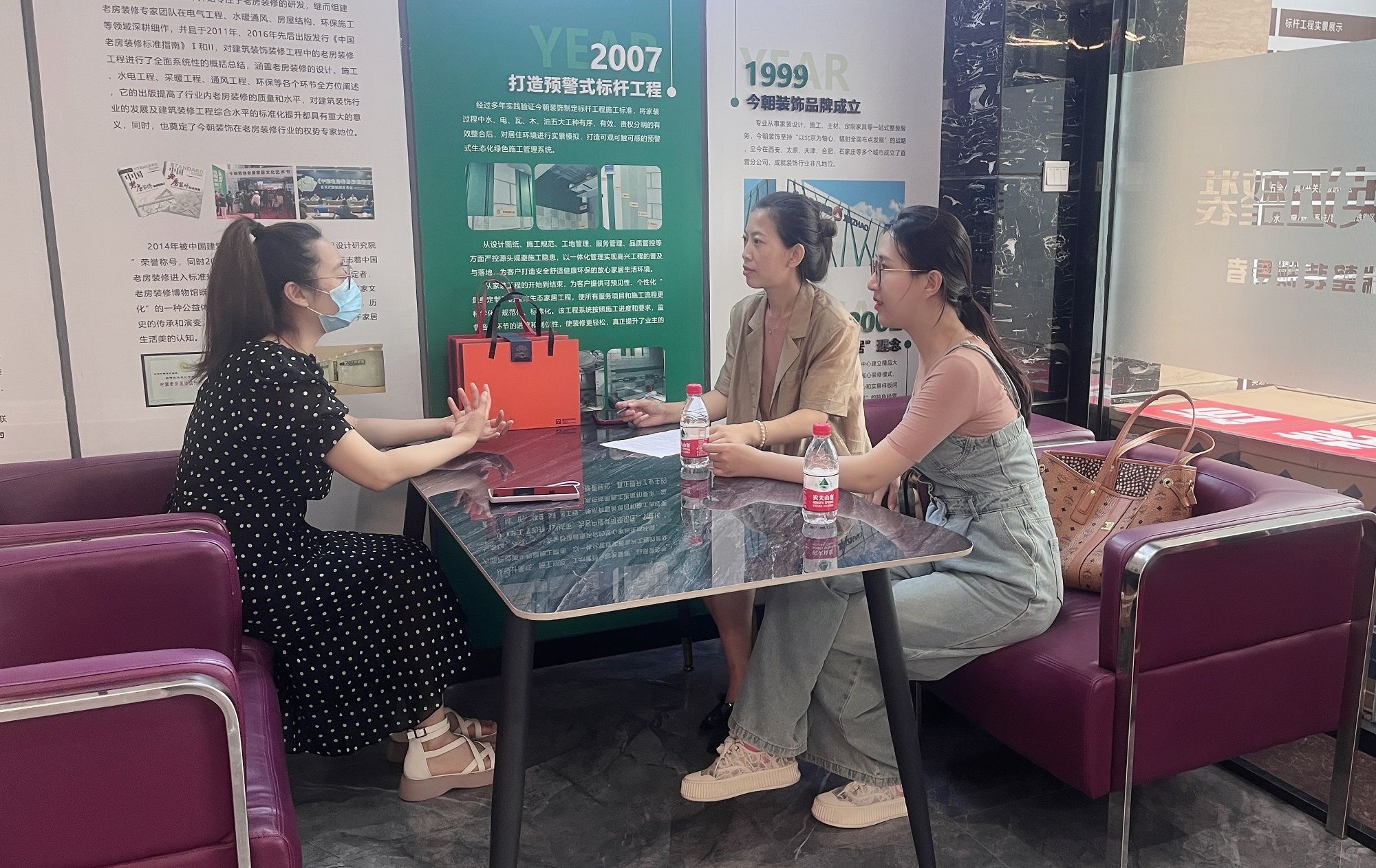 “今朝装饰”的人事经理魏燕宁经理给我们介绍了今朝装饰指的总部在北京,成立于1999年,专业从事各类公用装饰、家庭装饰设计、施工及其它配套服务的大型综合性企业。从2005年开始,先后在太原、西安、石家庄、天津、合肥建立了五家直营分公司。现在石家庄分公司正在进行店面的装修升级,部分空间不适宜参观,公司加入了生态家居和全屋定制的展场,整个公司共四层,占地面积1万平米。