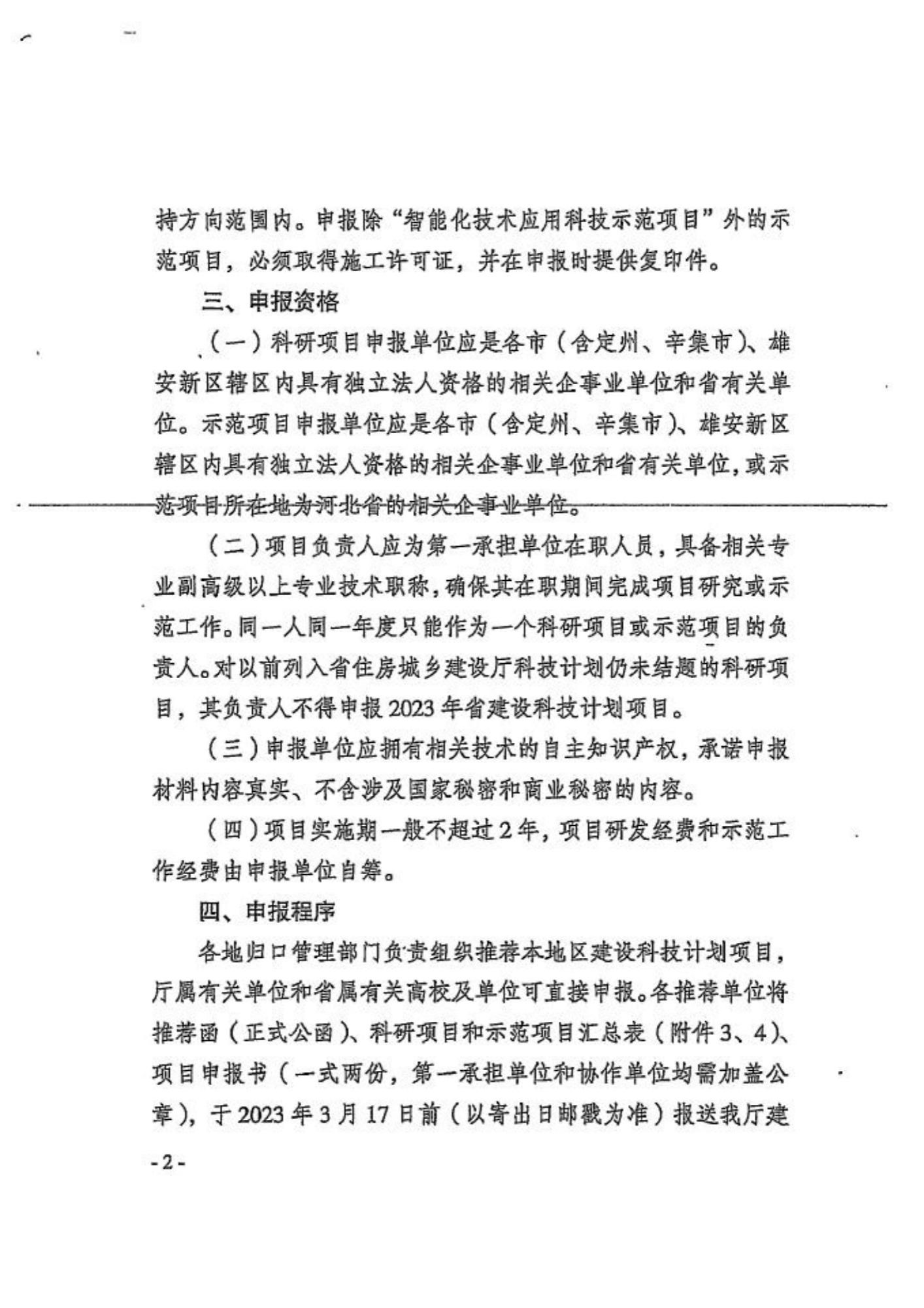 河北省住建厅关于组织申报2023年河北省建设科技计划项目的通知