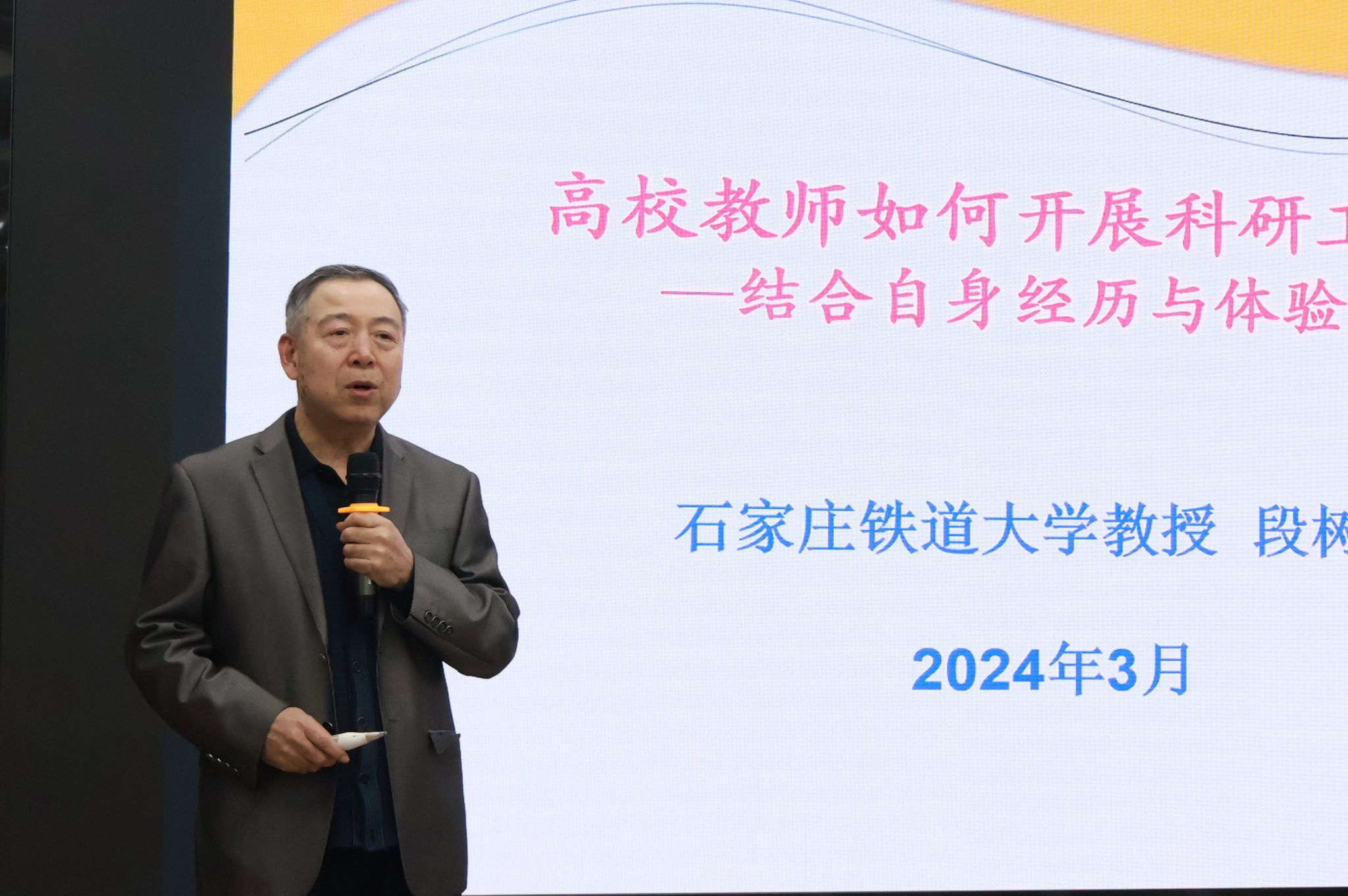 2024年3月25日下午,我院特邀石家庄铁道大学土木工程学院二级教授段树金教授开展题为:学术讲座。讲座在永利集团官网会议中心第一会议室举行,出席会议人员有3044永利集团官网院长王明生、教学副院长谷雨、教学副院长杜慧慧及我院师生。