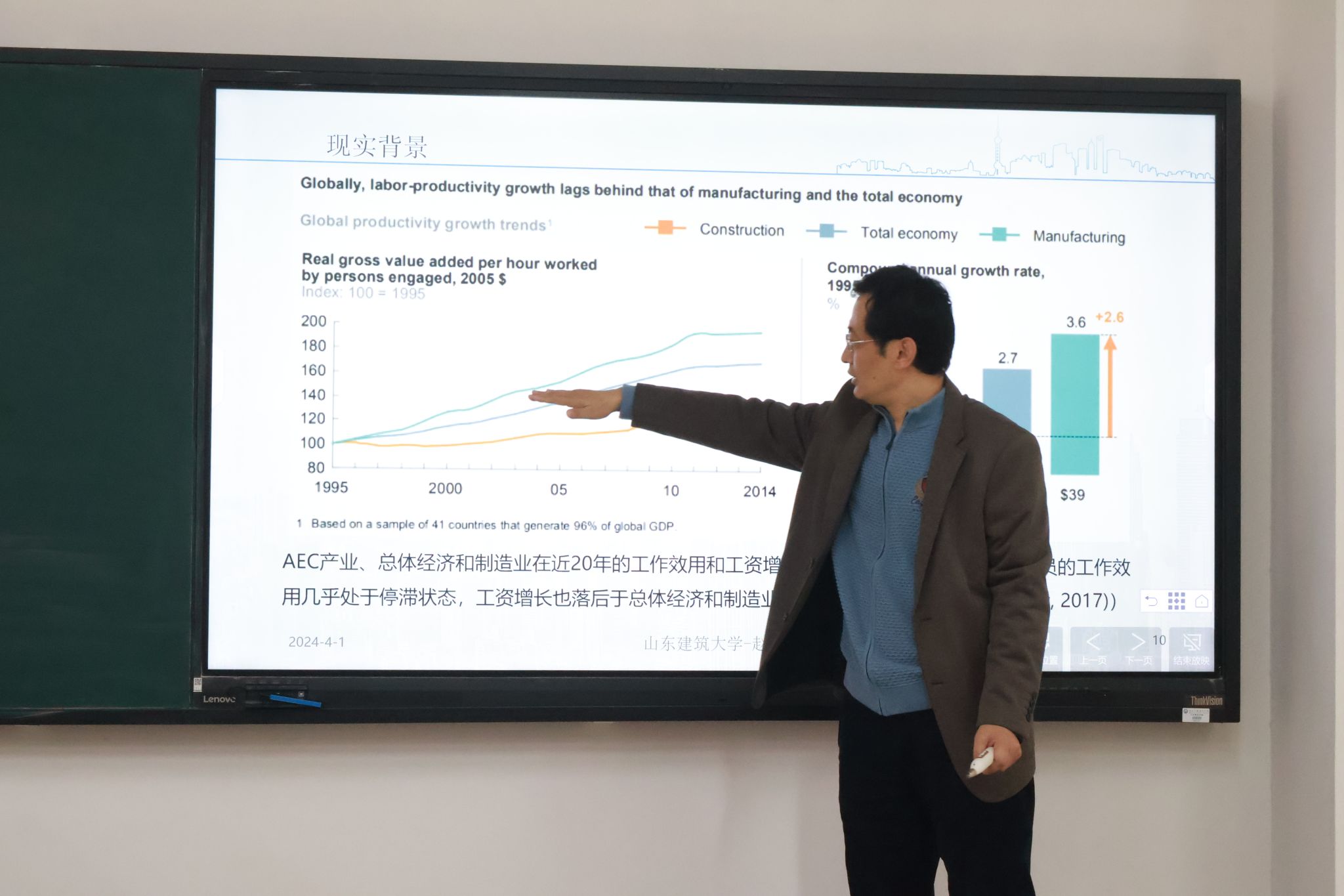 我院通过定期举办科研讲座提升学院师生的科研敏感度、科研意识,营造我院良好的学术氛围,学院于4月1日下午2:30在知行楼4-1开展了精彩讲座,此次讲座我院有幸邀请到了山东建筑大学土木计算中心主任,BIM协同研究所所长赵全斌教授。