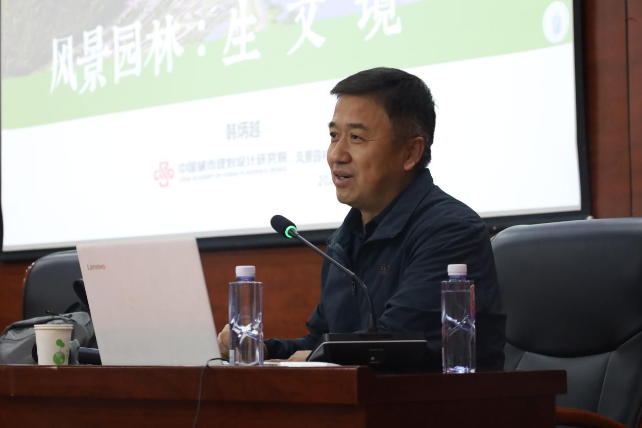 韩炳越教授,作为风景园林领域的资深专家,凭借其多年在该领域的深耕细作,不仅积累了极为丰富的实践经验,还构筑了深厚的学术底蕴。在其精彩的讲座中,韩教授多维度、深层次地剖析了“生文境”这一核心议题,巧妙地将国家政策的导向与时代背景的大潮相融合,为在场的师生们深刻揭示了园林绿化实践中面临的挑战、风景园林领域的发展趋势以及亟待解决的关键问题,并针对性地提出了富有洞见的解决方案。通过一系列生动鲜活、引人入胜的案例分享,以及韩教授本人丰富的实践经验,他有力地展示了风景园林在守护生态环境、传承文化精髓以及塑造和谐美好的人居环境方面所扮演的关键角色。此外,韩教授还着重强调了创新设计理念与可持续发展策略在当代风景园林实践中的不可或缺性,它们如同双翼,为风景园林事业的蓬勃发展提供了强劲的动力与广阔的空间。