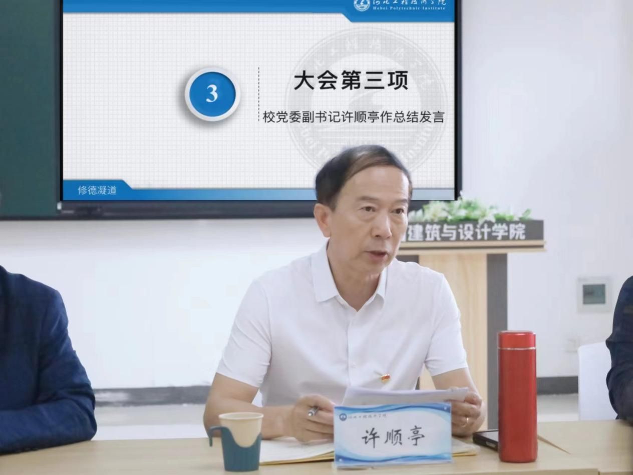 9月27日下午,建筑与设计学院在主教602举办习近平新时代中国特色社会主义思想主题教育动员会。参加会议的有:校党委副书记许顺亭,建筑与设计学院院长武勇、党总支书记(副院长)张玲玲,教工党支部书记李江涛,学生党支部书记刘腾及全院党员。