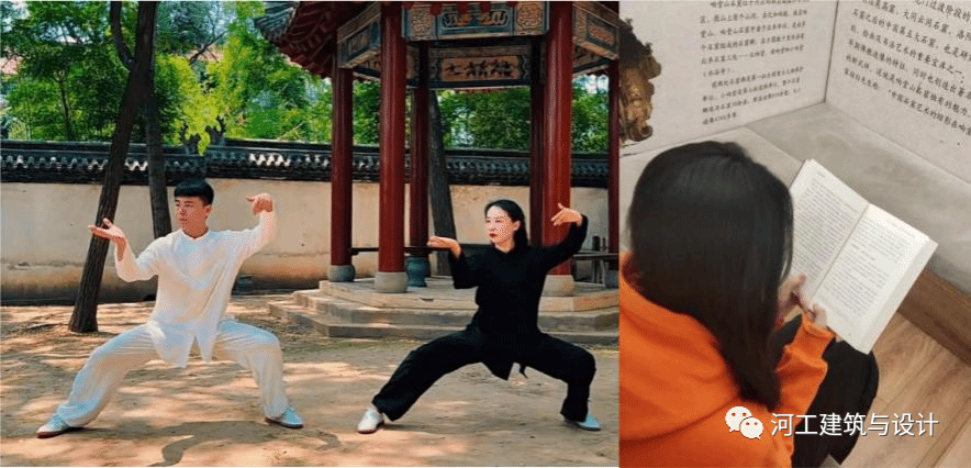 进入城门,路两旁是富有文化气息的建筑群,有着属于当地的特色美食以及琳琅满目的古玩店。城内亦有打太极的人,其静如动、其动如静、动静循环,彰显着太极文化的神秘丰富。通过在场太极老师的介绍,了解到广府古城是杨式太极拳、武式太极拳的发祥地,在太极拳界执大旗地位,被誉为中国太极之乡。
