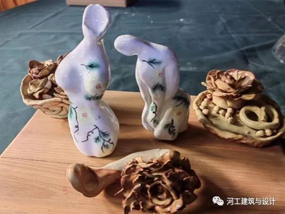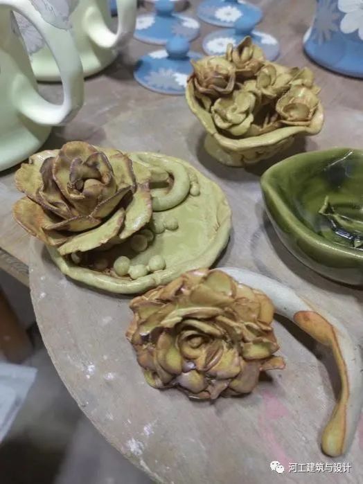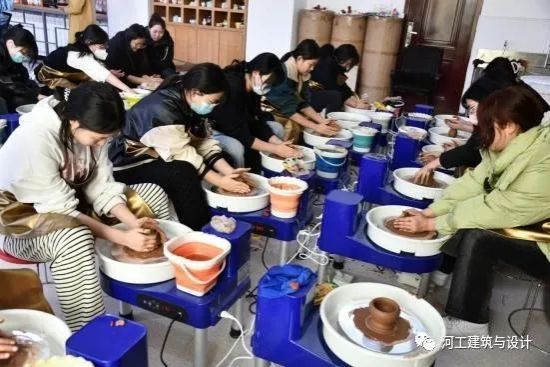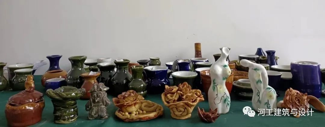 课程当中,采用了理论与实践相结合的方时,从陶瓷的历史背景,审美特点及其制作工艺等多个方面,准确把握住了文化内涵。在老师们的循循善诱之下,同学们在制陶过程中技法逐渐熟练,搓、揉、捏、拍、打、按、敲,诸多技法也在实践中,由最开始的生疏稚嫩变得愈加成熟,最后,形成了不尽相同,却又各赋特色的陶器制品。