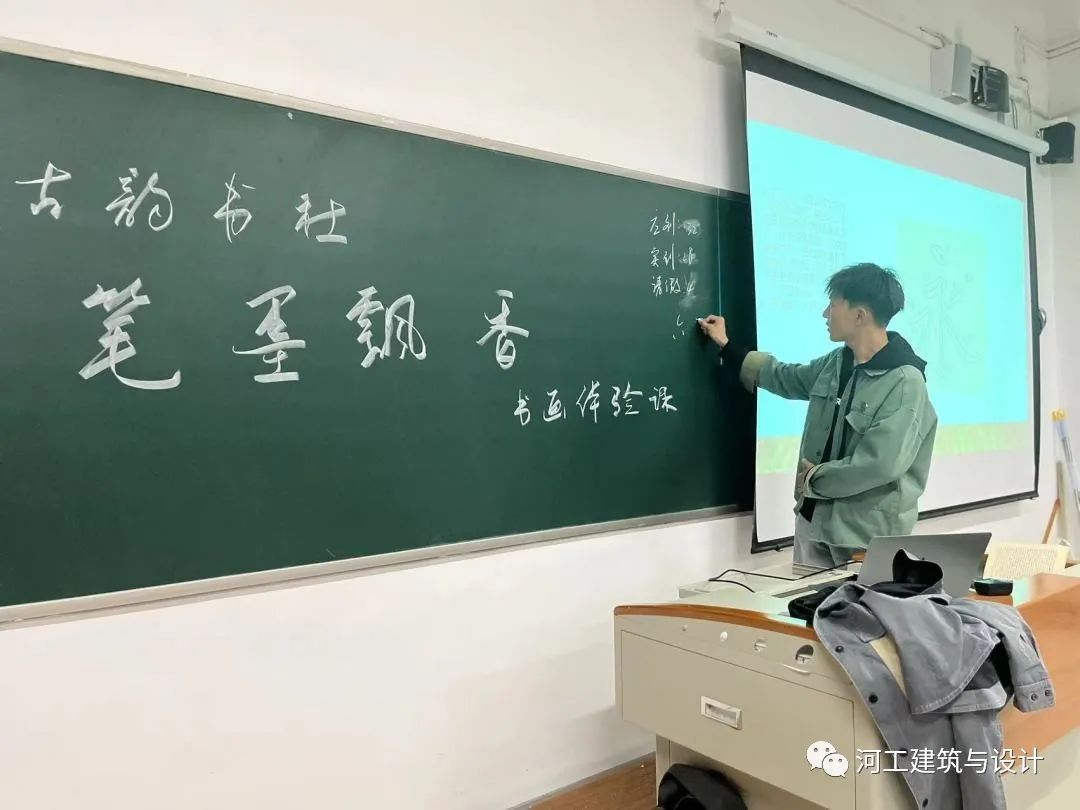 无言的诗,无形的舞,无图的画,无声的乐。书法的艺术魅力,带着不可言说的妙处和韵味,笔墨飘香,文韵自来。为增强大学生感受书画的魅力;弘扬中华优秀传统文化,提高大学生的国学修养,建筑与设计学院古韵书社、拾艺画社与校大学生社团联合会崖山国学社联合举办“笔墨飘香,书画体验课”的活动,充实同学艺术文化生活和课余时间。