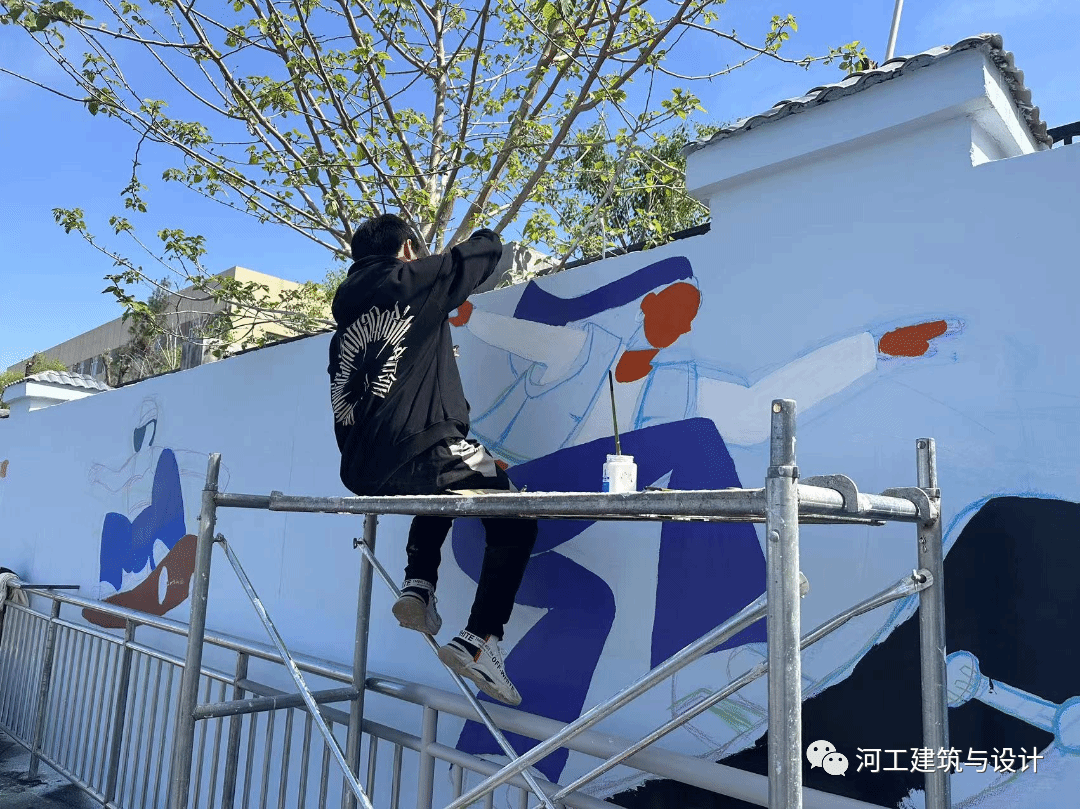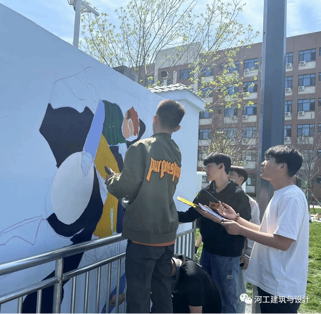 建筑与设计学院以新时代文明实践为重点,确立了以“党建+项目+文化”为载体的工作思路,精心打造专项文化手绘墙体,党建引领团建,学生工作以接地气的形式出现在大学生日常生活当中,把党、团建文化融入日常生活。此次活动,多次向学生征集手绘主题,最终确定以“运动“”健康“为主要内容,同时突出社会主义核心价值观和学习二十大精神的主题。在面向全院师生征稿过程中,分为4个小组并由专业教师作为负责人带领各个班级进行。