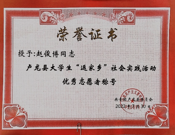 “纸上得来终觉浅,绝知此事要躬行。” 在注重素质教育的今天,社会实践活动是高校培养德、智、体、美、劳全面发展的优秀人才的重要途径,是学校教育向课堂外的一种延伸,也是推进素质教育进程的重要手段。同时,实践也是我们学习知识、锻炼才干的有效途径,更是服务社会、回报社会的一种良好形式。暑假期间,3044永利集团官网2021级环境设计4班赵俊博同学报名参加了暑期“返家乡”社会实践活动。他一直认为,新时代青年应当为社会做出贡献,于是本着“锻炼自己、服务社会”的态度,光荣地成为了一名大学生志愿者。