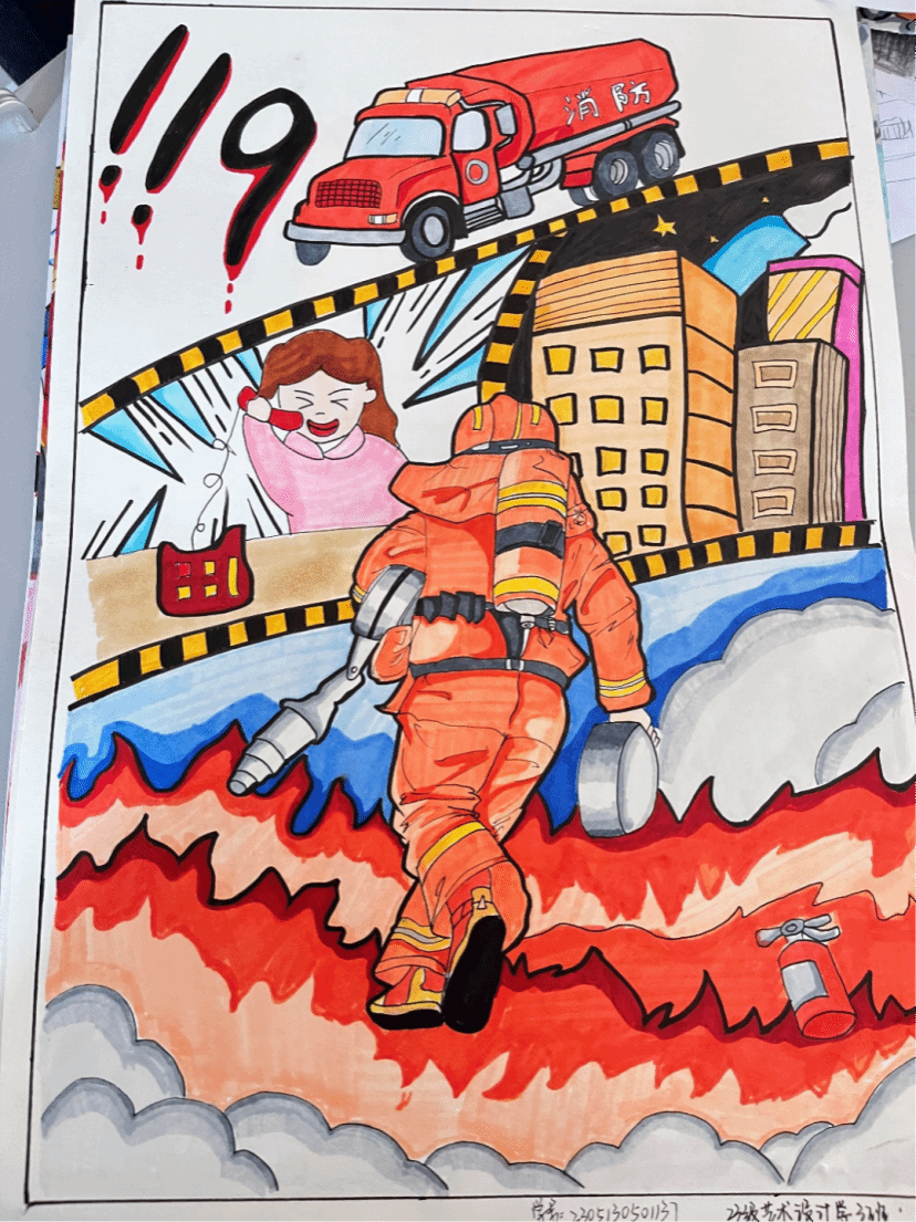 通过本次消防主题绘画活动,不仅能够充实学生的课余时间,而且可以让更多的学生意识到消防安全在我们日常生活中的重要性,从而更加积极的去了解消防安全,学习相关消防知识,并会及时排除生活中的消防隐患。让同学们深刻领悟了关注消防,珍爱生命的重要主题,增加了对消防与火灾方面的相关知识;提升了对火灾隐患的重视与消防技能;更加了解了消防员的危险工作和他们的勇敢辛苦;让每个领悟到生命的宝贵,活动的内容值得大家内化于心,外化于行,熟记消防知识,并应用到生活中去,减少火灾隐患。