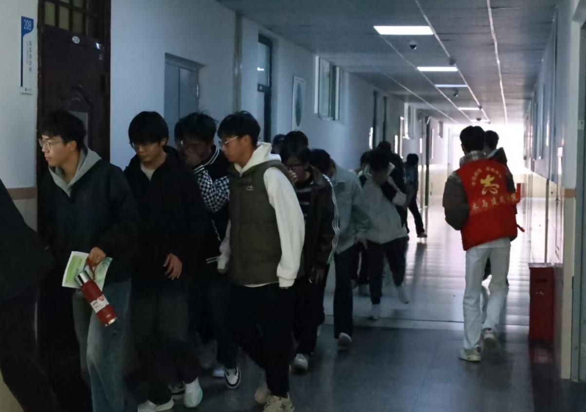 下午1点00分,主教楼响起"火情”预警信号,随即,工作人员迅速到达指定岗位,组织学生迅速、有序地按照指定路线撤离。撤离过程中,师生反应敏捷、行动迅速、撤离井然有序,85名师生从危险区域安全地撤离到主教楼前空地。
