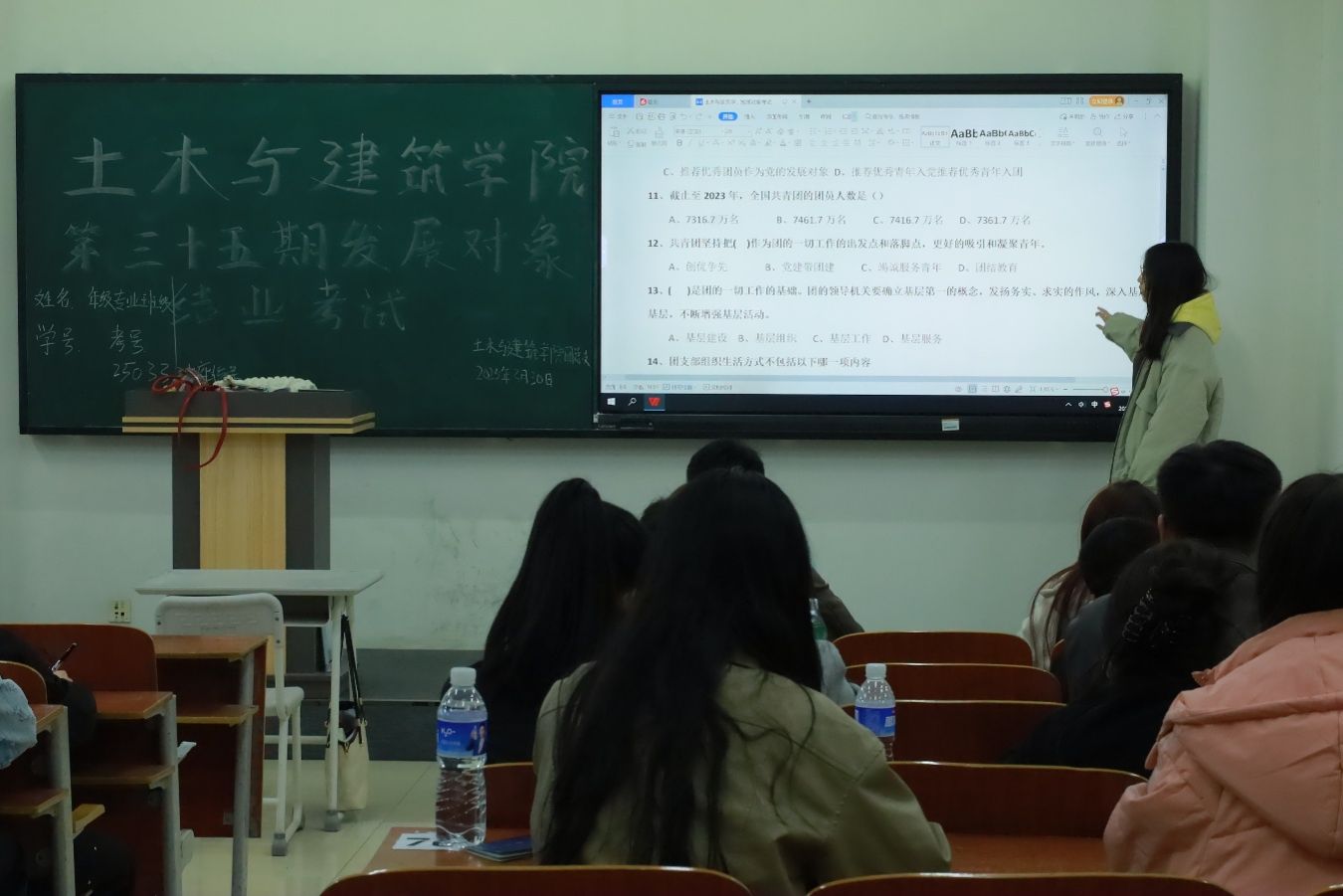 考核现场秩序严谨,参考学员凝神静气,以严谨态度将培训期间的知识成果转化为书面答卷。这既是一次知识检验更是一次淬炼思想成果的升华,见证着发展对象们用笔墨书写忠诚担当,向党组织递交的阶段性思想答卷。