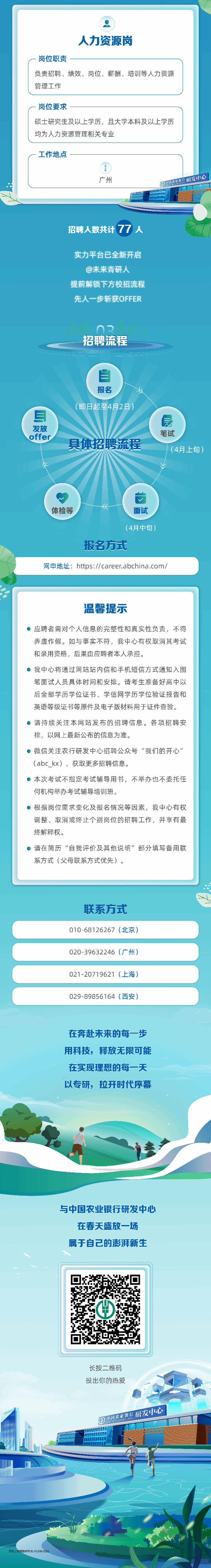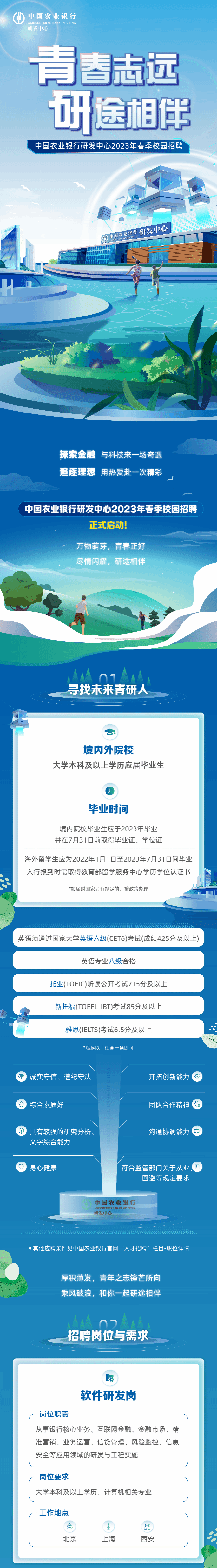 「招聘公告 」中国农业银行研发中心2023年春季校园招聘