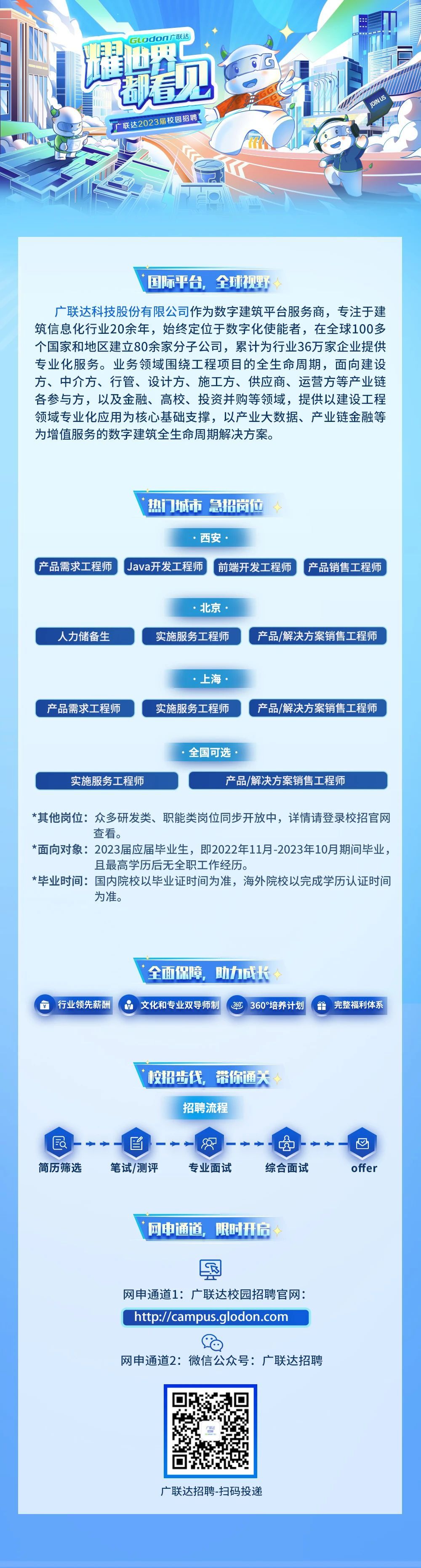 「招聘公告」上市公司 | 广联达2023届春招热门城市急招岗位推荐!