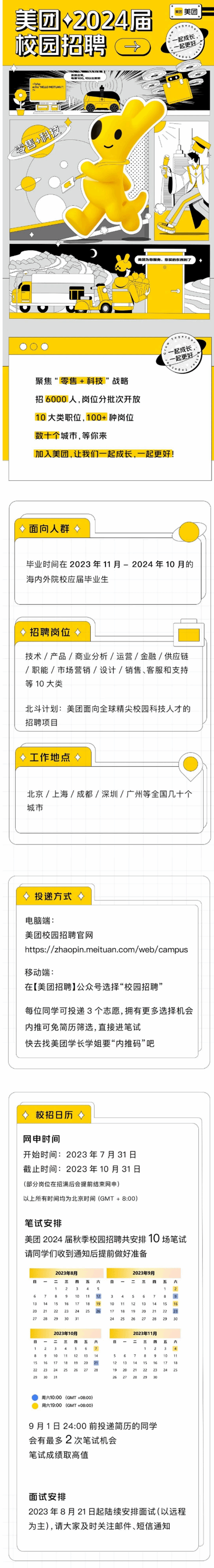 「招聘公告」美团2024届秋季校园招聘!全国有岗!