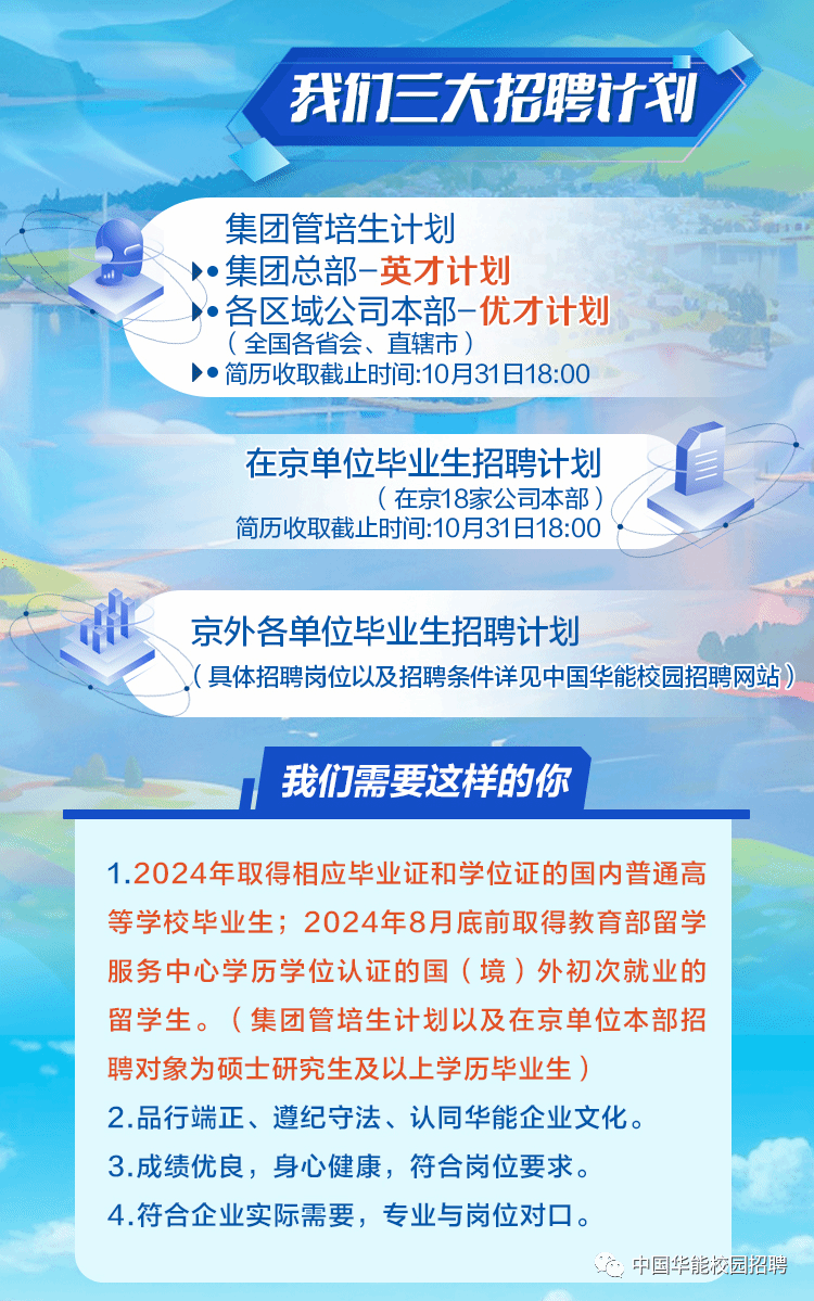 「招聘公告」4000+offer!中国华能2024校园招聘正式启动!全国有岗!