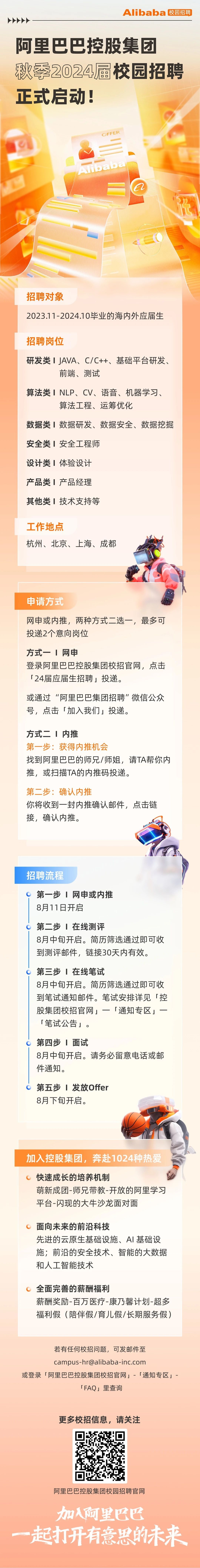 「招聘公告」阿里巴巴控股集团2024届秋季校园招聘正式启动!