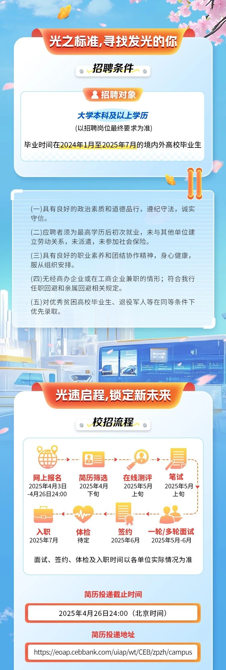 「招聘公告」中国光大银行2025年春季校园招聘正式启动!