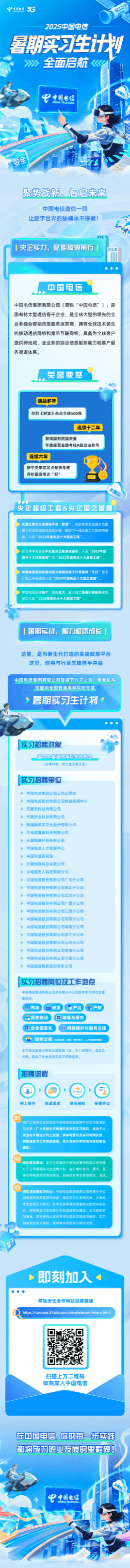 「招聘公告」中国电信2025年暑期实习生计划正式启动