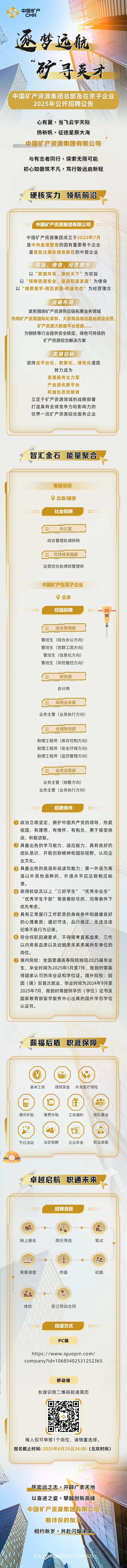 「招聘公告」河北有岗!中国矿产资源集团总部及子企业2025年公开招聘公告